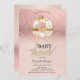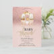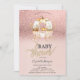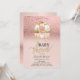 O convite para o chá de fraldas bonito apresenta um boque brilhante em ouro rosa com um chá de fraldas de carruagem de abóbora floral. Esses convites para chuveiros de bebês são facilmente personalizados para seu evento simplesmente adicionando seus detalhes.