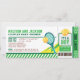 Jogo. Conjunto... Combine! Este convite de festas verde amarelo de tênis apresenta um raquet de tênis e uma bola de tênis em um design de permissão de passagem de entrada admite um ticket. Todo o texto é editável, você pode editar este tíquete de torneio de tênis para o chá de fraldas desportivo, festa de aniversário tênis, festa de torneio de tênis e muito mais!