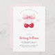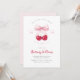 Celebre o chá de fraldas mais doce com este Convite para Chá de fraldas de Cereja de Arco Rosa. Apresentando cerejas a aquarelas brilhantes e um delicado arco cor-de-rosa, essa design coqueteira expele encanto e feminilidade. A paleta rosa e vermelha macia e o roteiro elegante o tornam perfeito para um na moda e chá de fraldas alegre para uma menina.