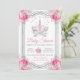 Chamadas cor-de-rosa para bebês unicórnios com belos monocromos de diamante prateado com arco rosa bonito num lindo fundo floral de diamante rosa. Esses elegantes convites para chuveiros unicórnios, cor-de-rosa e prata, são facilmente personalizados para seu evento simplesmente adicionando seus detalhes.