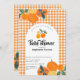 O convite para o chá de fraldas dos citros de laranja é tão doce. Divertido e moderno com laranjas a cores e gingham.