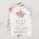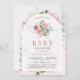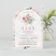 Encontrem seus hóspedes com este elegante chá de fraldas cor-de-rosa pincelado convidado com lindas flores e tipografia moderna com código QR para registro de presentes. Basta adicionar os detalhes do seu evento neste modelo fácil de usar para torná-lo um convite de tipo único.