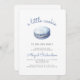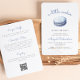 Este convite de chá de fraldas bonito apresenta uma ilustração de aquarela de um cookie macaron azul. Acima de tudo, as palavras "um pequeno biscoito" aparecem no roteiro de escrita manual azul. Personalize o texto com o nome da futura mãe no script azul e os detalhes na fonte serif de cinza. O verso oferece espaço para fralda, livros para bebê e detalhes do registro, juntamente com um conveniente código QR que os convidados podem digitalizar para visitar o registro. Ideal para o chá de fraldas de um menino.