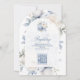 Convite Chá de fraldas de Código QR Floral Branco e Azul D
