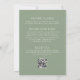 Uma bela borda floral de aquarela de flores silvestres decora a borda inferior deste convite de chá de fraldas de vassouras. As palavras "Baby in bloom" aparecem em fontes serif e script, com alternâncias antes e depois do script. Personalize o texto com o nome da futura mãe e os detalhes do chá em branco sobre um fundo verde sábio. O verso oferece espaço para fralda, livros para bebê e detalhes do registro (ou quaisquer três categorias de sua escolha), além de uma conveniente pesquisa de código QR para visitá-lo.