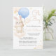Convite Chá de fraldas de coelhinhos bonitos com balões az