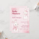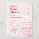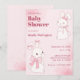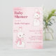 Convite Chá de fraldas de coelho rosa e bonito