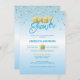 Convite Chá de fraldas de Confetti Dourado Azul Moderno e