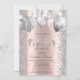 Um moderno, chique e glamouroso com um confete brilhante prateado, e balões sobre um fundo rosa de ouro.