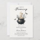 Abraçar o espírito de outubro com nosso convite para Chás de fraldas com tema de Dia das Bruxas, neutro em termos de gênero. Apresentando designs brancas de um caldeirão borbulhante e morcegos amigáveis em um pano de fundo de creme mole. Este convite exumenta um encanto único, com a legenda adorável 'um bebê está se formando'. Perfeito para criar a antecipação para a sua chegada. Um design assustador, mas elegante, e trará um toque de magia para o seu chá de fraldas!