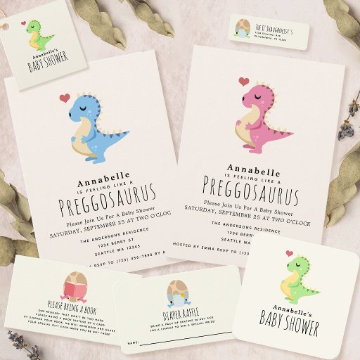 Convite Chá de fraldas de Dinossauro Cute Preggosaurus
