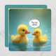 Dois adoráveis filhotes flutuam numa superfície calma e refletora, cercados por um fundo turquesa macio e sonhador. Todo o texto pode ser alterado.