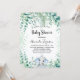 Convite Chá de fraldas de elefante azul eucalipto verde