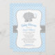 Convite Chá de fraldas de Elefante Azul Moderno e Cinza