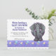 O Elefante Fofo Personalizado de Festa Animal Convidou, Cartões, Presentes, Favoritos para festas e muito mais são para o seu lado divertido com a nossa arte original de um elefante de cinza branca parado nas gramíneas verdes da savana com um céu cor-de-rosa texturizado e uma brincalhona e roxa. Pintado pelo talentoso artista infantil Traci Van Wagoner, nosso divertido animal safari, o equipamento do partido temido é perfeito para amantes de elefantes de todas as idades. Em muitas das nossas engrenagens quentes de animais selvagens, vocês verão o paquiderme giro vindo e indo com esta trabalho de arte divertida da cabeça do elefante giro na frente e a cauda do elefante africano nas costas. Junte-se à Parada Animal e jogue um balde cheio de animais com nossas cabeças divertidas e rabos, elefantes, com festa de aniversário temida. Para começar sua festa, envie a todos os amigos do seu filho um convite que eles não podem recusar. Diverte-te!