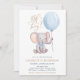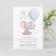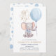 Convite Chá de fraldas de Elefante Cute de Balão Azul Meni
