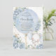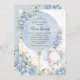 Personalize este cartão de convite de chá de fraldas de garoto branco de forma fácil e rápida, simplesmente clique no botão personalizá-lo para editar os textos, alterar as fontes e as cores das fontes. Projetado para captar a essência da alegria e da antecipação, esse convite encantador apresenta um adorável elefante para bebês, acompanhado pela elegância suave dos rosas azuis para bebês e delicados arranjos florais. Um toque lúdico é adicionado com um balão de aquarela, onde você pode colocar seus detalhes de personalização. Itens correspondentes disponíveis no repositório. c) Paperie fina somerset
