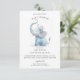 Um simples convite para chás de fraldas de aquarela branca, com uma mãe e um elefante bebê. Tipo de script e serif. disponível em impressão, como download digital ou ambos.