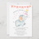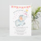 Convite para chás de fraldas de meninas adoráveis com um elefante giro soprando bolhas em um fundo branco com uma coroa princesa e faixa cor-de-rosa. Sacudir o nosso convite fofo para ver um cor-de-rosa coordenador para um toque especial extra.