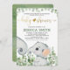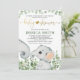 Convite para Chá de fraldas de Elefante Neutro por Aquarela de Gênero - Prepare-se para todos os ouvidos. Porque tudo é "irr-elefante" quando um pequeno tesouro está a caminho. Apresentando este convite impressionante de chá de fraldas verde e dourado. Apresentando um pequeno elefante amigável com verde aquoso macio. Saia do rebanho e concentre-se na "bolota" em mãos com este convite muito bonito de chá de fraldas neutro em termos de gênero.