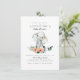 Um design com elefante pintado à mão e buquê floral. Os detalhes do seu chá aparecem na tipografia moderna do roteiro. Estes convites revertem para uma cor rosa pincelada e padrão polka branco. Para personalizar, basta editar o texto nas caixas de modelo e escolher as opções de impressão e papel corretas para você!