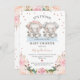 Convite Chá de fraldas de Elefantes Gêmeos Florais Azuis,