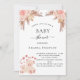 Para um chá de fraldas moderno estilo boho. Um fundo branco. Decorados com ouro rosa e flores cor-de-rosa, rosas, erva-pampas e ursinhas. Personalize e adicione um nome e detalhes da parte.