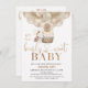 Sexo Boho Neutro Convite para Chá de fraldas de Esperança Convite Doce neutro em termos de gênero podemos esperar o convite para o chá de fraldas com um urso fofo, balão de ar quente, rosa de ouro falso profundo com coração e um arranjo floral.