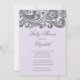 Comece seu chá de fraldas de bebê com nosso convite de Chá de fraldas de espiral de cinza floral de moda e elegante, definido em um fundo púrpura de lilac. Personalize nosso convite elegante com suas informações de chá de fraldas e você está pronto para ir. Disponível em outras combinações de cor de bebê na moda no nosso compro em www.celebrateitinvites.com. Veja nossas notas de agradecimento, adesivos e botões de bebê em nosso compro