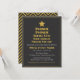 Um convite elegante, chique, moderno e moderno para o chá de fraldas no tema da pequena estrela giratória. Ela tem uma estrela sobre todas as palavras "Twinkle twinkle pequeno star, que milagre adorável você é!" parecendo quase uma decoração de estrelas em uma árvore de Natal. Tratada com folha de ouro como textura e um padrão de textura de burlap preta. Na página inversa está um padrão zigzag hevron na mesma textura e cores. Personalize facilmente com os detalhes do seu chá de fraldas.