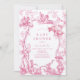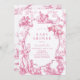 Este elegante convite à chá de fraldas de fazenda do campo de jouy, apresentado em França, inclui animais de exploração, como ovelhas, bovinos, galinhas, um rapaz, e uma lavandaria, a rosa, no campo francês. Personalize-o para as suas necessidades. Você pode encontrar produtos correspondentes na minha loja.