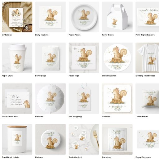 Convite Chá de fraldas de Fita Botânica de Esquilo Cinto