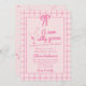 Se você está procurando por um elegante convite de chá de fraldas de menina, único e fácil personalizável, isso é perfeito para você. Como podem ver, ele apresenta um script manuscrito retrô de um ganso de bobo está prestes a ficar solto em rosa vívido. E ganso desenhado à mão e uma fita. E o guarda-lamas rosa e quadrados cor-de-rosa, gingham. Todos claros, cor-de-rosa e sobre fundo cor-de-rosa claro. Muito fácil de personalizar e usar. Então pegue e masculine seus convites muito comprometidos.