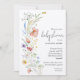 Os convites para chuveiros de bebês com na moda neutro em relação ao gênero apresentam elegantes flores silvestres de aquarela e seus detalhes em caracteres quicos. Mostramos este convite impresso em papel Felt Ecru, mas escolha seu favorito para seus convites. CORRESPONDENTE a itens na nossa coleção.