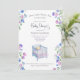 Este elegante e bonito convite para o chá de fraldas com as palavras "Nossa Pequena Ervilha Doce está quase aqui!" apresenta bordas de delicadas videiras florais de ervilha doce de aquarela em tons azuis, lavandas e rosa pastéis, evocando a beleza de um jardim florescente, e uma ilustração de um berço à espera de um bebê.