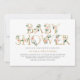Convite para chás de fraldas bonito e femininos. Apresenta uma tipografia de folha de ouro fauc com cor d'água, cor de pêssego, rosa e flores de marfim. Este convite para o ouro e a corda é perfeito para uma chá de fraldas de Garota e jardim. Personalize adicionando nome, data, evento, hora, local e outros detalhes.