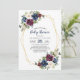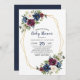 Lindas flores de aquarela em cores marinho, burgundy, brancas com uma estrutura geométrica de ouro e um roteiro de caligrafia moderno. Perfeito para chá de fraldas ou evento especial no estilo. Personalizado com seu próprio texto especial e use-o para o partido ou evento de sua escolha. Itens correspondentes estão disponíveis em nosso compro.