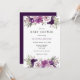Convite para chá de fraldas com aquarela púrpura e flores lavandas. Personalize com suas informações ou clique em "Clique para personalizar mais" para editar estilos de fonte, tamanho e cores.