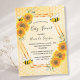 Elegante, chá de fraldas divertido, neutro em relação ao gênero. Fundo amarelo com um padrão de colmeia de ouro. Com uma falsa estrutura geométrica dourada. Amarelo, girassóis cor de laranja e abelhas-deslumbradas. Com o texto: Chá de fraldas e o nome da mamãe a ser gravada na frente com um moderno script de estilo escrito à mão. Letras negras. Traseira: padrão branco amarelo de mel.