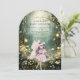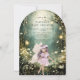 Uma fada mágica temida arco encantado da floresta moldou o convite ao chá de fraldas, apresentando um cenário de floresta encantado na floresta com luzes suspensas brilhantes, e uma fada num caminho arborizado. Disponível no impressão, como um download digital para enviar em seu telefone ou em ambos.