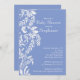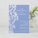 O belo convite para chás de fraldas de design é a primeira impressão perfeita para o chá de fraldas do seu bebê. Nosso convite para o chá de fraldas de na moda apresenta um padrão floral de folha branca definido em um fundo escuro de Baby Blue. Perfeito para um chá de fraldas primavera, chá de fraldas de verão ou chá de fraldas de outono.
