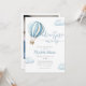 Este charmoso convite para chás de fraldas apresenta um balão e nuvens de ar quente azul e bonito, juntamente com a elegante tipografia de script. Com o código QR do registro e a foto especial no verso. Projetado por Thisnotme©