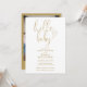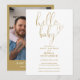 Este elegante convite de chá de fraldas de script em ouro pode ser personalizado com todas as suas informações especiais de celebração e fotos especiais no verso. Projetado por Thisnotme©
