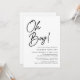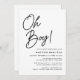 Celebre o seu pequeno com estes simples convites para chuveiros de bebês com "Oh Boy!" em letras negros num fundo branco limpo. Personalize com o nome da mãe e os detalhes do chá, enquanto o verso exibe sua foto de gravidez e texto personalizado. Perfeito para chás de fraldas, esses convites preto e branco criam um olhar moderno, minimalista que funciona com qualquer tema partidário. Opções completas de personalização fazem com que este chá de fraldas elegante convide o anúncio perfeito para sua celebração especial.