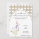 "Um novo ganso de bobo está prestes a ficar solto". Celebrar com esta festa de chá de fraldas de ganso fofo! Um ganso de aquarela no chapéu de aniversário. Gaiola castanha.