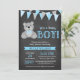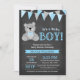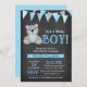 Celebre um bebê a caminho com esta cinza fofa e o convite para chá de fraldas de ursinho azul. Este convite apresenta uma ilustração de ursinho de pelúcia de cinza e um banner de bunting em um fundo de quadro.