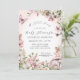 FLORAL DE GARANTIA DE COTTAGEM vertical 5x7 COM COGUMELOS MUSHROOMS FAIRY PINK BABY GIRL CHÁ - Versão de fundo rosa pálido | Flores cor-de-rosa-claro e flores brancas de fadas-fadas com arco de flores silvestres, abelhas bonitinhas, borboletas e um par de amigos-fadas. Um é colocado sobre um cogumelo gigante entre a fronteira das flores silvestres. No verso, um fundo cor-de-rosa com um pequeno padrão de bolinhas branca. A cor do plano de fundo pode ser alterada, como qualquer parte do fazer de texto pode ser facilmente usada em qualquer ocasião. Um conjunto completo de produtos está disponível para compra na coleção. MSP0116