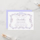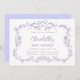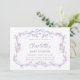 Este convite para chás de fraldas de meninas apresenta um quadro floral lavanda adorado com borboletas e fitas.
