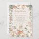 Bonita Chá de fraldas De Rapariga Coelhinha De Woodland Convidado. Este design de estilo vintage tem um belo coelho a saltar por trás das flores e folhagem. Você pode personalizar facilmente todo o texto de acordo com suas necessidades. Um fundo de creme coordenado está atrás.