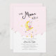 Um doce convite para uma chá de fraldas com um tema "Ama-te à Lua e às estrelas", com uma rapariga de coelho fofinha a segurar um coração cor-de-rosa, sentada num celular da lua. O título, "para a Lua e Volta" está na caligrafia moderna do roteiro.